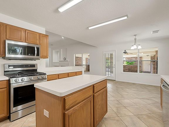 Brick on all sidesFresh neutral paintHigh ceilingsLg stainless steel appliancesTexas-sided covered patioSpacious wooded lot