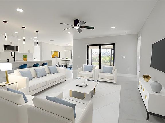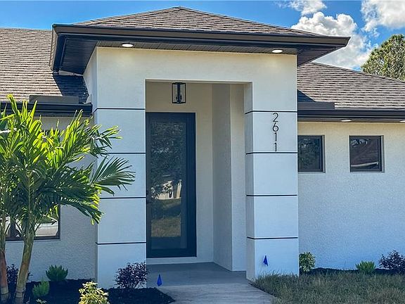 NEW CONSTRUCTION. SELLER WILLING TO CONTRIBUTE UP TO $10K TOWARDS BUYER'S CLOSING COSTS WITH A FULL-PRICE OFFER. VIRTUAL TOUR LINK AVAILABLE. This 3 bedroom plus den, 2 bathrooms home features tile floors and modern kitchen cabinets. Kitchen's island with Waterfall quartz countertops and stainless steel kitchen appliances (side-by-side refrigerator, range, dishwasher, microwave) Master suite with two walk-in closets and bathroom with dual sinks and modern floating cabinets, quartz countertops, glass shower enclosure, and separate toilet. The Guest bathroom also has a glass shower door and modern floating cabinets. Screened lanai with plumbing ready for an outdoor kitchen. Spacious backyard with room for a pool. Laundry is conveniently located inside the house and includes a laundry sink with a quartz countertop which offers extra space to fold the clothes. Two-car garage and concrete driveway. The house is located in a quiet neighborhood close to Lee Blvd, Walmart, other shopping centers, and the local hospital. It is also close to Sunshine Blvd and gives quick access to Ft Myers and I-75.
