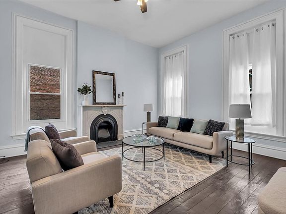 Welcome to this stunning all brick home offering the perfect blend of historic charm and modern elegance. As you enter, you will notice the soaring 12 foot ceilings and the beautifully restored antique hardwood floors. Other features and updates include spacious bedrooms including the main floor primary with ensuite, custom tile in the bathrooms and kitchen, spacious kitchen with double stacked cabinets and open shelving for endless storage, and a large island with seating and even more storage, quartz countertops, updated appliances and new lighting. Upstairs, you will find 2 more bedrooms and a beautifully updated bathroom with shower & modern soaker tub, 2nd floor laundry and large double vanity, exposed brick in the hallway and a massive bedroom. The HVAC, plumbing, electrical and water heater are also all updated, and there is a 2nd laundry area in the basement. Private off street parking in the back.