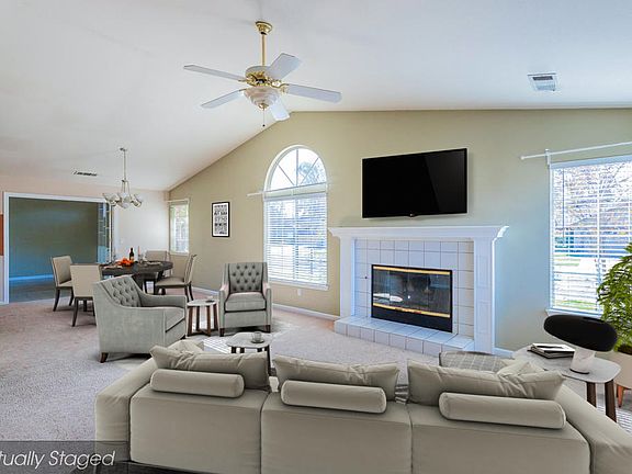 Excellent curb appeal on large corner lot. Bright open floor plan with vaulted ceilings and whole house fan. Kitchen with stainless steel appliances and breakfast bar. Possible IN-LAW set up with Two master bedroom suites, one with Jacuzzi tub and walk in closet, the other suite has double sinks and access to the back yard. Wonderful backyard with pergola, storage building, and gated RV parking.