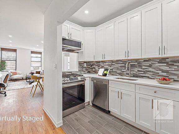 If your dream is an affordable and move-in ready slice of Manhattan life in Central Harlem, step into Apartment 4i at The Bradhurst. This sleek two-bedroom is perfectly appointed to become your private sanctuary or the setting to make memories with friends and family. The great flow of this residence begins as soon as you step into the entry to the view of an expansive living and dining room that offer enough room to give your furniture a new, comfortable home or the canvas for your dream design. Do you like to create in the kitchen or are you a take-out kinda person? No worries, the newly renovated kitchen will not disappoint! Featuring expansive workspace on luminous quartz countertops and ample cabinetry complimented by a stunning tile backsplash and a suite of stainless-steel appliances, we have you covered. The split two-bedroom layout provides space and privacy, thoughtfully placed on either side of a newly renovated bathroom that is beautifully appointed, spacious, and pristine. All this plus an in-unit WASHER/DRYER, hardwood floors and a peaceful, Zen-like quiet.