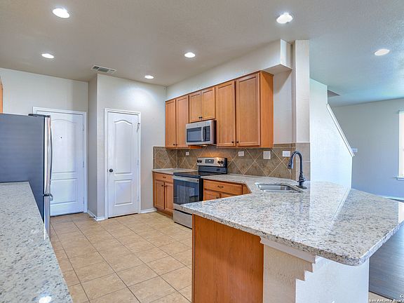 Welcome to 2611 Green Leaf Way, a beautiful residence nestled in the vibrant city of San Antonio. This two-story home offers 3 bedrooms and 2.5 baths, providing ample space and comfort for modern living. Step inside to discover a spacious and inviting interior, where luxury vinyl plank and ceramic tile flooring span throughout the home, creating a seamless and stylish atmosphere. The absence of carpet ensures easy maintenance and adds a touch of elegance to each room. The modern open floorplan enhances the sense of flow and connectivity between the living spaces, perfect for both everyday living and entertaining guests. The kitchen features stainless steel appliances, and the refrigerator conveys with the sale, making it move-in ready for the new owners. Outside, the large private yard, enclosed by a wood fence, offers a tranquil retreat for outdoor activities and relaxation, providing the perfect setting for enjoying the Texas sunshine. Located in a desirable area of San Antonio, residents of 2611 Green Leaf Way enjoy the convenience of nearby amenities, including shopping, dining, and entertainment options. Don't miss the opportunity to make this beautiful home your own. Reach out to your agent today to schedule a viewing and experience the charm and comfort of living at 2611 Green Leaf Way.