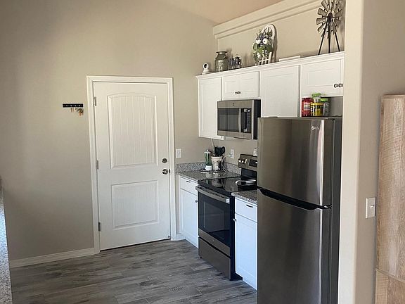 Built in 2021, 3-bedroom 2 bathroom with 2 car garage. Home has Electric heating and cooling system, stove & hot water heater, Granite Counters, Custom Solid Wood Self Closing Cabinets, stainless steel appliances include oven, microwave, dishwasher and garbage disposal. 9' Bedroom Ceilings. Tile floor through out the house. Walk-in shower, Tile Roof, RV parking with Gate, landscape front yard and backyards -Tenant responsible for all utilities and yard maintenance -Tenant to pay pet deposit if pet approved -No Smoking Household -Perspective Applicants should fill out a Zillow Application and have their credit ran through Zillow for faster approval. -Proof of Renters Insurance -Call for Deposit details -no washer/dryer/fridge