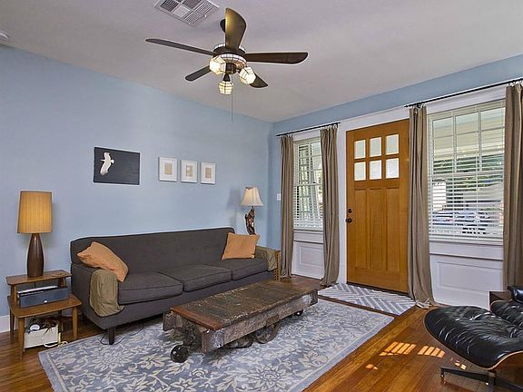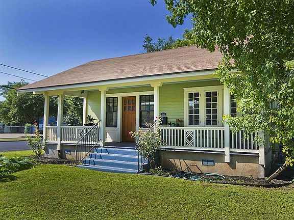 This remodel of a classic 1930's bungalow makes a very special home. Updated HVAC, wiring, water heater, triple paned windows & extra attic insulation added creates lower utility costs. Premium location w/impressive walkability to numerous restaurants/bars including Hops & Grains Brewery & across the street from HEB. Blend of classic & modern w/original wood floors, vintage bathroom, remodeled master & granite in kitchen. Oversized front covered porch & huge front yard garden.