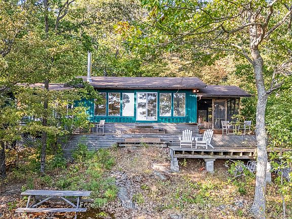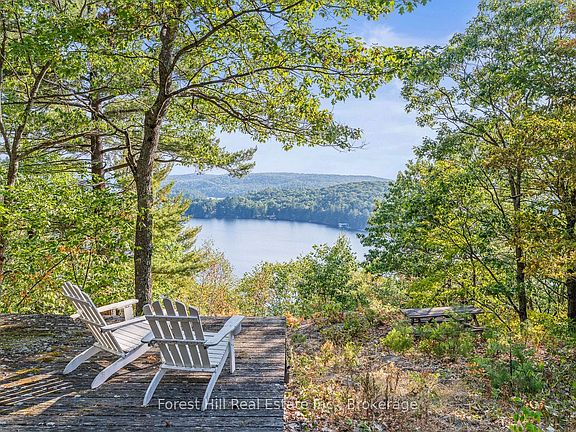 Discover this truly unique 14-acre retreat with BREATHTAKING views overlooking Rabbit Bay on Lake of Bays. Exceptional privacy, this property is a rare opportunity offering ~ one of the finest vistas on the lake. The 1,000 sq. ft. seasonal cabin exudes rustic charm with a spacious open-concept kitchen, dining/living area, a large bedroom and a 3-piece bathroom. Outdoor living is enhanced by a screened-in porch and a deck perfectly positioned to take in the elevated views. There is a composting toilet & both indoor and outdoor showers. The sink and shower's water source is via a rainwater collection system and a grey water pit for waste. A storage shed is also included. Accessed via a seasonal private road (not plowed in winter). This property offers seclusion while remaining conveniently close to amenities. Minutes from the charming town of Dorset and the Rabbit Bay boat launch and beach for swimming, where you can also enjoy miles of boating on Lake of Bays.This property offers an extraordinary combination of acreage, privacy and one-of-a-kind views in a sought-after location. Seriously, this is possibly one of the most beautiful views of Lake of Bays in the area. Come check it out!