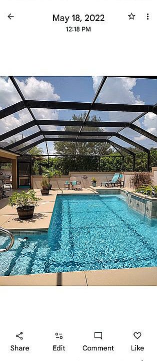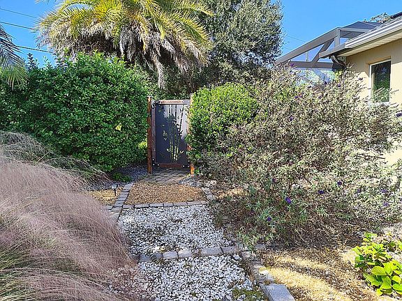 This house is a stretched Lantana with a two car garage and a two golf cart bay. Landscaped with a beautiful Asian rock garden, dog area and back yard for entertaining. The Lanai area is designed with cozy spa feel, and yet plenty big enough for large get togethers. It has a designer pool with waterfall, solar heat, and all controlled by your phone. The bidgage has both abdecorative beach front and woody stream screen for privacy and setting. Most importantly you have no neighbors in back and neighbors to the right and left cannot be seen from your Lanai. Off the master bedroom is a 3-person hot tub. The covered Lanai has retractable solar screens when the sun is strong. The Lanai floor has porcelain tile which washes off nicely with a hose. There is also a beach style bar area you must see.