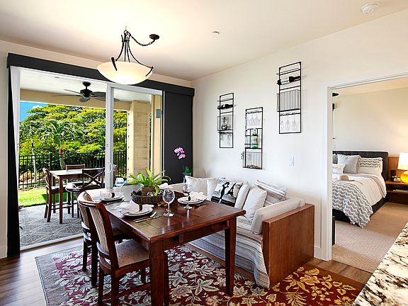 Exceptional fully furnished turn key vacation rental situated on the ground floor corner end of complex. Poipu's newest luxury condos on Kauai's south shore. 13H fringed by both ocean and mountain views. This unit equipped with GE smart appliances, Central Air, inviting lanai and green space, fully furnished turnkey vacation rental or second home. The area is resort-designed around Hawaiian cultural landmarks, fresh local markets, eateries, and a beautiful pool and recreation area.
