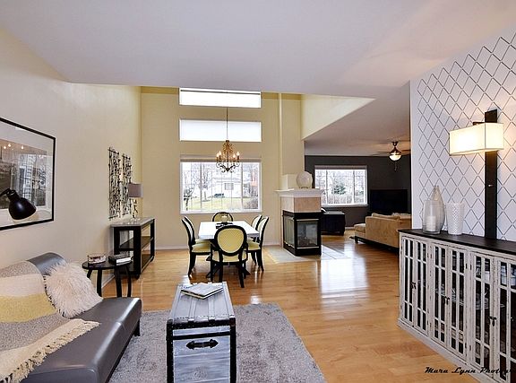 Pristine, light-filled townhouse in charming Geneva. The open concept floor plan on the main floor provides living space with versatility, great space for entertaining, and features volume ceilings and a wall of windows. Generous sized kitchen has ample cabinets, tons of counter space, a breakfast bar and new stainless steel appliances. New hardwood floors on main level-2014. The back of this unit and the patio off the family room face a beautifully landscaped grassy area. The 2nd floor includes a spacious loft overlooking the living area-perfect for office, den or playroom. Master bedroom suite has a vaulted ceiling, a "Container Store" custom closet, and a master bath with separate shower & tub and double sinks. New carpet on 2nd level-2017. Full basement could be finished for additional living space or is great for storage. New water heater-2015. Fantastic location convenient to Metra, downtown Geneva, Geneva Commons, Delnor, parks, restaurants, walking/biking trails.