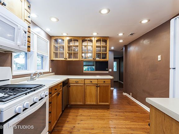 Wow! Just move in. New roof (2020), stove (2020), refrigerator (2020), furnace and A/C (2020), hot water heater (2018), microwave (2018), washer (2020), dryer (2012). Updated bath and kitchen, hard wood floor, home is on a large lot, oversized 2 car garage. Only 1 block from 355 and 2 miles to train station. Just move in!