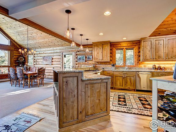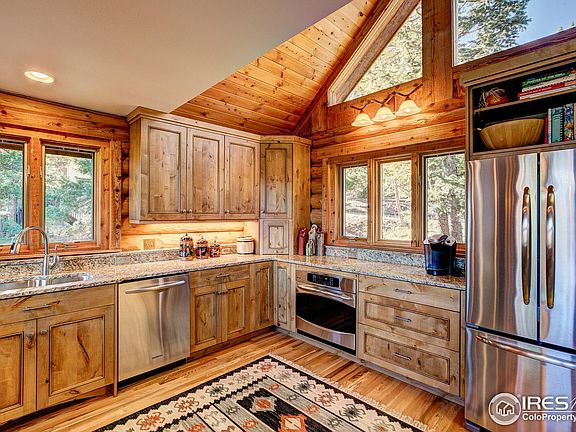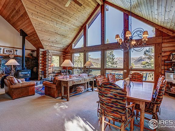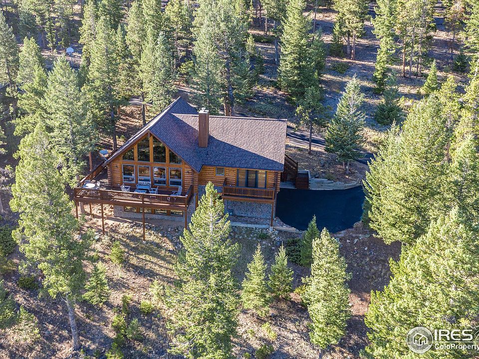 Beautiful log home nestled in the trees bordering the National Park after HOA land. Main level living, vaulted wood ceilings, newly remodeled kitchen with granite counters, spacious open floor plan, gas stove, wall of windows to capture the views into RMNP. Loft area with views of RMNP and National Forest. Master suite with private deck, luxury bath, walkin closet and office area. Lower level has spacious family room with walkout to yard, 2 large guest bedrooms and full bath. Home is move in ready with new roof in 2020 and fully furnished!