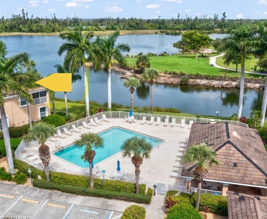 LOCATION,LOCATION!! Rare opportunity to own the only end unit overlooking the lake and pool. Spoonbill model, the largest floor plan at 1,857 sq ft, configured as 2 bedrooms plus a den. Outstanding value at approximately $162 per sq ft. Prime southern exposure delivers bright mornings, natural light all day, and cooler shaded evenings on the lanai.