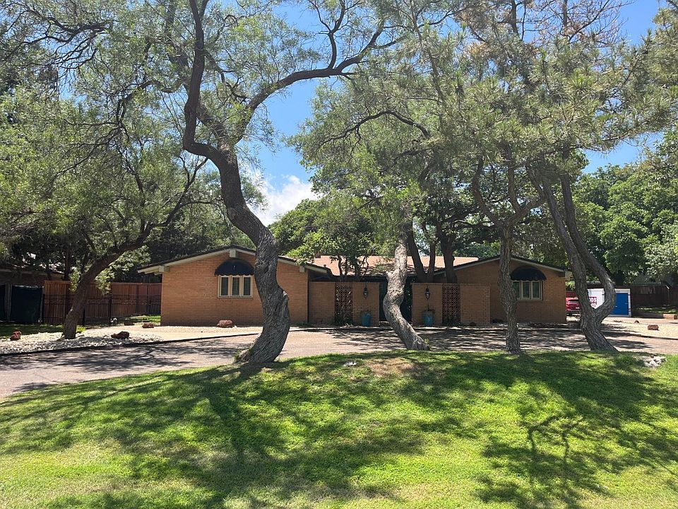 Knockout 3-3-2 older home in Lubbock Country Club! All bedrooms isolated with adjacent baths! Great kitchen with granite counters & backsplash,induction cooktop, huge island, many cabinets, ceramic tile (wood-look flooring)* massive fireplace (gas logs)in beautiful family room and french doors to large sunroom* A wonderful utility w sink, lots of storage and a huge pantry! Tons of storage*Wood shutters* 20x10 shop & another metal storage. Water well & city water. 19'swim spa & hot tub covered with pergola. 3/4 acre* 2 water heaters, 2 HVAC units. Side yard with iron fencing & gates. Sprinkler and security system* Wired for generator. Wonderful view of golf course.