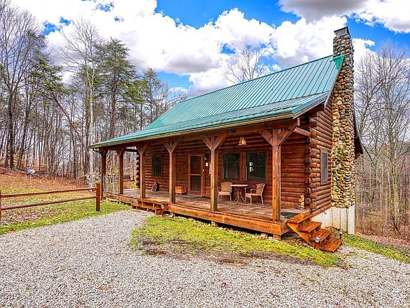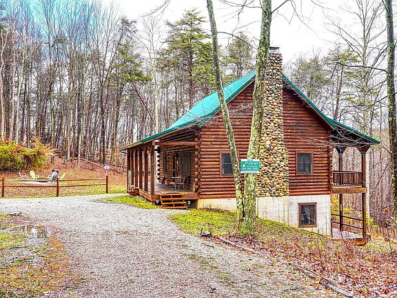 HOCKING HILLS OPPORTUNITY....5.31 acres with this charming log home in great location to all attractions and hiking! Features include 3 bedrooms, 2.5 baths, beautiful stone fireplace, spacious upper loft, wood floors, wonderful outdoor area with firepit and room to roam! Covered Hot tub, New metal roof 2019, cabin power washed and stained in 2021, new lower level flooring in 2021, new water softener, water heater 2021. Being sold turnkey with furniture and accessories with the exception of dining table set, coffee table on main floor, 2 quilts in closet ,leaf picture in dining area. Used as a vacation rental showing good return. Is being managed by Cabins by the Caves and is listed as Bear Creek Lodge on their site. Call for a private tour! Great opportunity to own your piece of paradise!