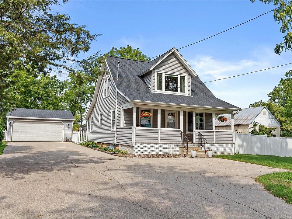 Three Bedroom Cape Cod with a gorgeous view of Wind Lake! Spacious bedrooms and a large full bathroom on the main level. Primary Bedroom features massive walk in closet! Basement ready to have bathroom addition. Walk outside to find the lovely stamped concrete patio and the fully fenced in backyard. Detached two car garage with large driveway. New roof in 2021, New Water Heater in 2021. Ready for you to add your personal touch!