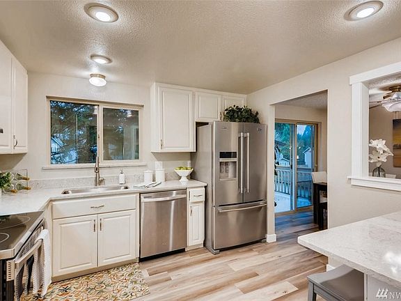 Beautifully updated home, located in the quiet neighborhood of Hunter's Height, within walking distance of local schools and Mill Creek parks & trails. Newly painted exterior and interior. New vinyl plank flooring, carpet and trim throughout. Kitchen updates include new quartz countertops, flooring and stainless steel appliances, with space remodeled open to living and dining areas. Upstairs family room includes wood-burning fireplace. Home office downstairs and large bonus room with cozy gas fireplace makes this a perfect live-work-play opportunity. Bathroom updates include new vanities, fixtures and more. Fully fenced backyard, raised-bed garden and fruit trees provide opportunity to enjoy the outdoors.
