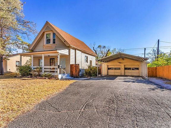 Discover timeless charm and modern comfort in this spacious 1.5-story home on Pueblo's Northside. This 3-bedroom, 2-bath residence offers a spacious layout with open concept and a rare combination of privacy, parking, and outdoor living. The oversized 2-car detached garage with workshop, 2-car carport, and driveway provide ample space for vehicles, trailers, boats or RVs. Massive 38' x 21' storage building—ideal for contractors, hobbyists, or anyone needing secure space for tools or recreational gear - needs TLC. Inside, the main level features a bright living room, separate dining area, and kitchen with under-cabinet lighting and eat-in bar. Upstairs, two bedrooms and a full bath offer comfort and flexibility. Step outside to a gardener's paradise: greenhouse, apple tree, grape vines, rose bushes, and a large covered composite deck perfect for entertaining. Sump pump in the basement. Located close to parks and amenities, this home blends character, functionality, and value.