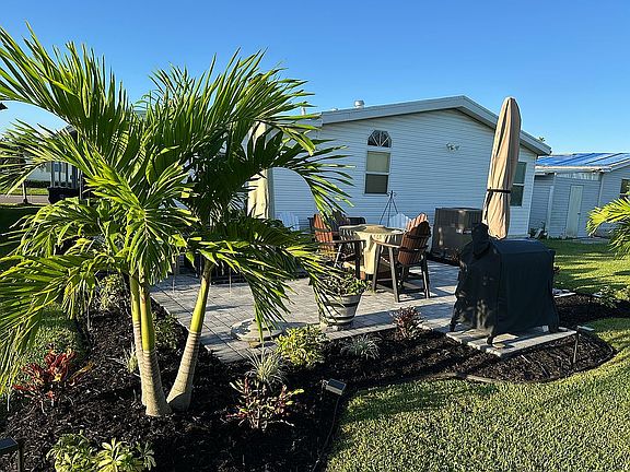 This well maintained home located in a 55+ luxury manufactured home community has lots of upgrades. New lifetime membrane roof (2023), New A/C-Heating unit (2023), New paver outdoor patio located in the rear of the house (2024), Bath off Master bedroom upgraded with new walk-in shower (2025), Partial kitchen upgrade including NEW LG appliances ( Refrigerator, glass top range/oven, and dishwasher). New upper/lower cabinets and countertop on shiplap wall in one section of the kitchen (2025) and upgraded landscape front and back of home (2025). This home is in a land lease community and current lot rent is $1,442.00 per month (subject to change). Amenities offered by the community in your lease are, Spectrum Cable / WiFi, Clubhouse with billiard room, library, activity area, full kitchen, exercise room and more. Also on the grounds of the club house you’ll find a pickelball court, shuffleboard courts, putting area, firpit, outdoor Tiki huts, heated pool with separate whirlpool and a view of the small lake. Call to make an appointment to see this home.