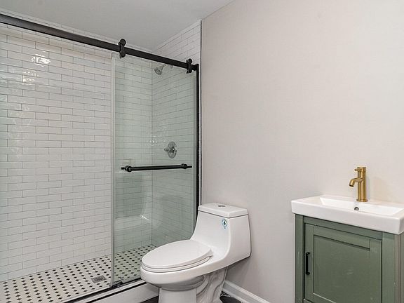 Newly renovated studio apartmentWalk in showerBasement of residential home