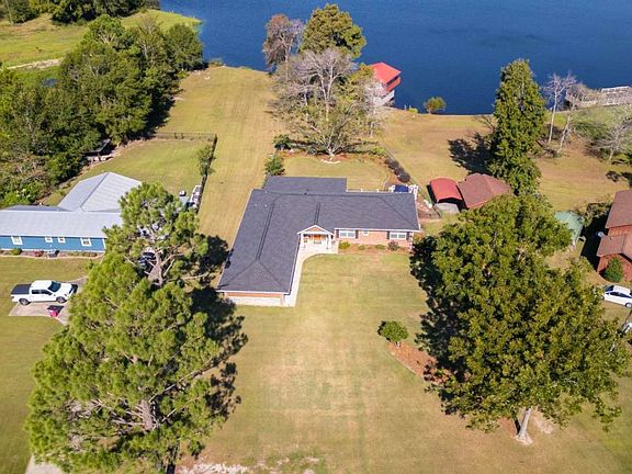 Welcome to lakefront living! This beautiful 3 bedroom, 2 bathroom home features a remodeled kitchen with new cabinets and appliances along with an added island with columns and stone. Other renovations include new siding, windows, doors, vinyl flooring throughout, and an updated primary bath with tiled shower and new vanity. A glassed-in porch with French doors, split AC, and wood walls adds year-round enjoyment. A new roof and HVAC unit were added in 2024. Outside you will find a fenced in yard with a spacious back porch with gorgeous water views, a TREX deck with stone accents and privacy panels, a private boat ramp, and a lakeside sitting area. Move-in ready and perfect for lake life! *boat house is apart of the neighboring property and not included with this listing*