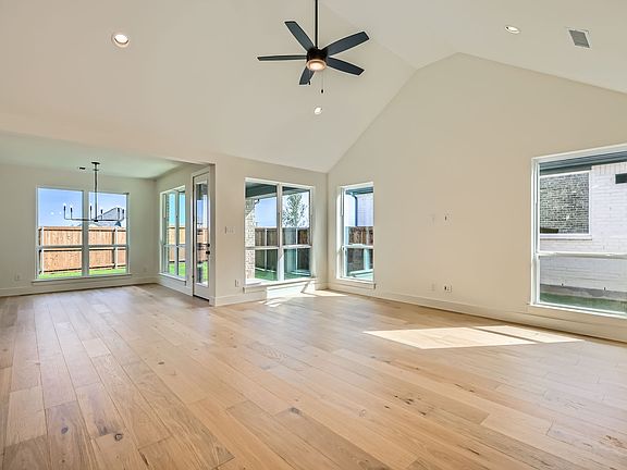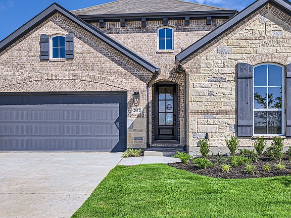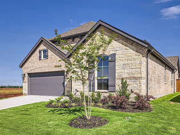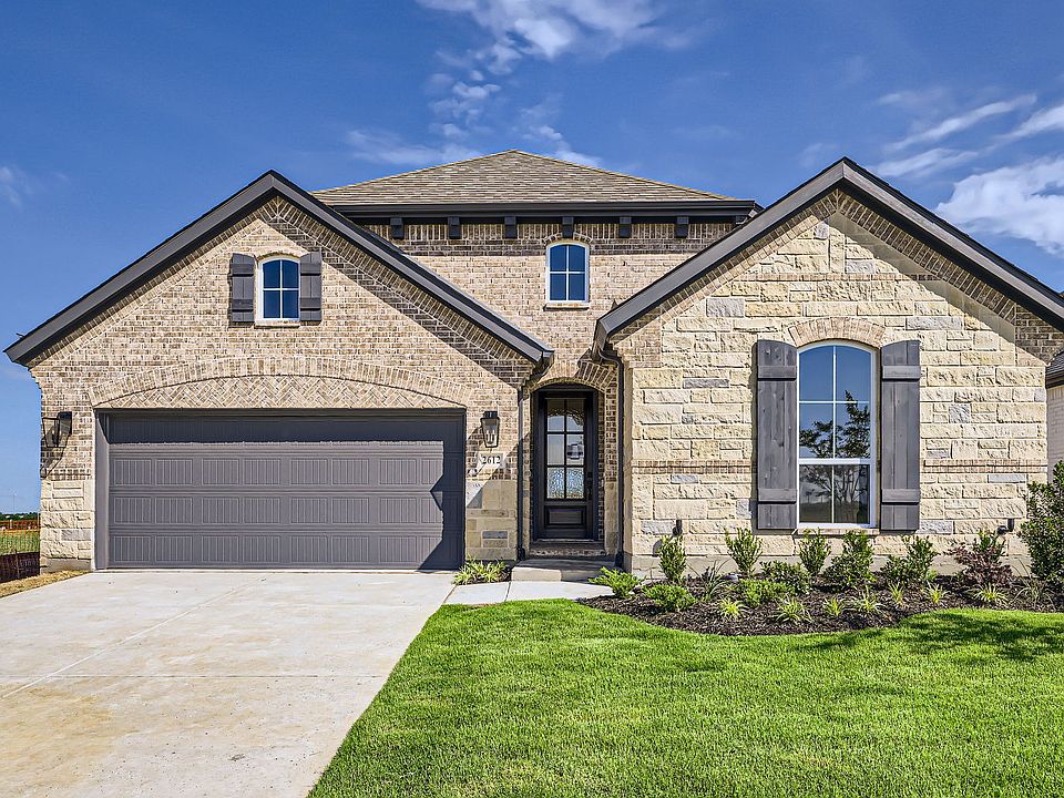 Every detail of this floor plan has been carefully considered, making it the perfect blend of form and function. This home has a striking exterior featuring brick, stone and cedar accents. The bedrooms are arranged to maximize privacy with two located at the front of the home, sharing a hall bath. An additional bedroom with an ensuite bath is located on a separate wing of the home, making it perfect for overnight guests. Secluded at the back of the home is the main bedroom suite. The luxurious main bath has an extended 12 foot long quartz vanity with dual sinks. The chef's kitchen boasts an abundance of storage with numerous cabinets and generously sized walk-in pantry. The 14-foot ceilings in the family room ceilings are dramatic and make a statement and the dining room features a butler's pantry with beautiful glass doors. Our professional designers have created a true retreat with light colored wood and warm beige and gray tones.