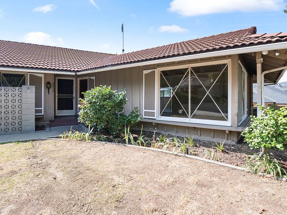Deep in the suburban streets of Hacienda Heights is one for the taking. An 1851 sqft single family home with 3-bedrooms and 2 bathrooms and the perfect opportunity to turn into a homeowner's dream. Surrounded by luscious greenery that beautifully landscapes the exterior, welcome into an open airy space with carpeting all throughout the living room. Vaulted and beamed ceilings complement the floor to ceiling all brick fireplace and gives the whole room a cozy vibe. Upon entry to the kitchen, you are greeted with tile flooring, dark mahogany toned cabinetry styled with white glossy countertops and built in appliances. Original hardwood in the dining room that leads to the fully covered patio in the side yard and the perfect venue for indoor and outdoor entertainment. 3 bedrooms featuring carpet all around and built-in closets, one of which is the primary with an en suite bathroom. A common hallway that shares a full bathroom, laundry room that has easy access to a partially covered patio and cabinetry for tons of storage. A large backyard that provides a tennis court/basketball court and enough space to build a pool, perfect for any sort of entertainment. House includes direct access to an attached 2 car garage that can be used a nifty workshop as well as plenty of parking in the driveway.