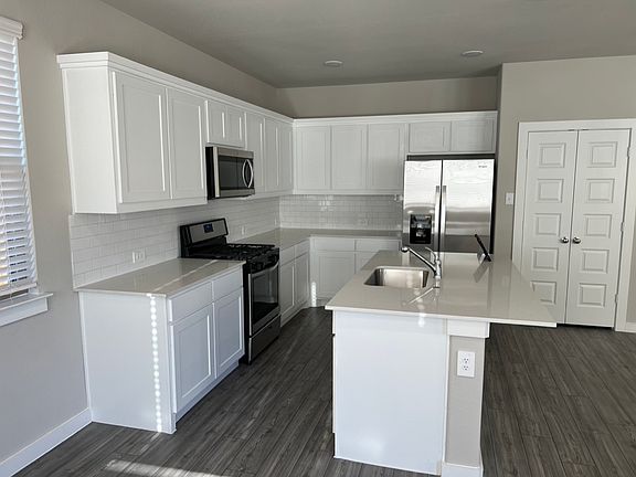 4 Bedroom 3 Full Bathroom 2 Stories with a large backyard, Highly energy efficient home. Gas Cooktop and Fridge included along with other stainless steel appliances microwave, oven, and dishwasher. Master bedroom upstairs with a huge bathroom. Utility room in between Master bedroom and other 2 bedrooms upstairs for convenience. Community pool and play area. 2022 Yr built. Pictures taken when new. Section 8 and Housing Voucher holders can apply.