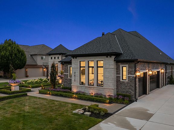 Discover the opportunity to own this exquisite home or collaborate with this premier builder to craft your own custom luxury estate on a premier lot. Welcome to the pinnacle of luxury — a breathtaking custom-built estate that defines elegance and sophistication, perfectly positioned along the 4th hole of the prestigious Twin Lakes Golf Club. Every inch of this extraordinary residence showcases impeccable craftsmanship, architectural finesse, and high-end finishes that elevate modern living to an art form. From the moment you arrive, the home’s stunning exterior commands attention with its striking blend of stone and brick, illuminated pathways, and professionally landscaped gardens that set a grand first impression. Step inside to soaring ceilings, intricate millwork, and an open-concept design that seamlessly blends luxury and comfort. The chef’s kitchen is a masterpiece of form and function, featuring an expansive marble island, top-of-the-line stainless steel appliances, custom cabinetry, and designer lighting that makes every meal feel special. The great room centers around a statement fireplace framed by mirrored built-ins, creating an ambiance that’s both warm and refined. Retreat to the serene primary suite where oversized windows capture panoramic golf course views, complemented by a spa-inspired ensuite with a freestanding tub, marble surfaces, and double-wide step in shower. The fully finished basement offers an entertainer’s paradise with a full custom bar, open recreation area, and direct walkout access to the beautifully landscaped outdoor living spaces. Whether hosting grand gatherings or quiet evenings on the covered patio, every detail has been thoughtfully designed for effortless elegance. Located within Twin Lakes’ premier gated community, this home offers exclusive access to golf, clubhouse amenities, and a refined lifestyle unlike any other. This is more than a home—it’s a statement of distinction, offering an unparalleled blend of elegance, craftsmanship, and lifestyle in one of the area’s most coveted settings.