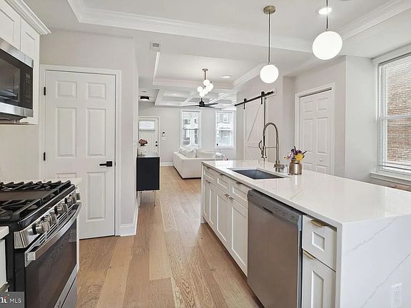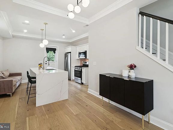 Welcome to Greenspring Estates, a stunning turnkey Baltimore townhome where modern luxury, smart home technology, and thoughtful design meet. This nearly new construction has been rebuilt from the ground up - not a quick flip - featuring upgraded systems, energy-efficient insulation, smart HVAC, high-efficiency lighting, and so miuch more! Step inside and you're greeted by an open-concept floor plan filled with natural light, dramatic coffered ceilings, and a striking LED fireplace feature wall on every level. The designer kitchen is the true showpiece: quartz waterfall countertops, stainless steel appliances, tray ceilings, a sleek backsplash, and USB charging ports - perfect for cooking, entertaining, and living. Just off the kitchen, enjoy your private rear yard and separate parking pad, offering convenience without the hassle of yard work. Upstairs, the primary suite boasts a massive walk-in closet and spa-like bath, complemented by two additional bedrooms and another full bath. The fully finished basement expands your lifestyle with a bedroom, office/flex space, wet bar, and a second living area - ideal for guests, a gym, or media space. With four bedrooms, three and a half bathrooms, LED fireplaces, a walk out basement and custom features throughout, this home blends style, comfort, and savings! Nestled on a revitalized block with a community group chat and surrounded by ongoing quality development, Greenspring Estates offers not just a home, but a neighborhood experience. Schedule your tour today - this is more than a must-see, it's a must-experience Baltimore home!