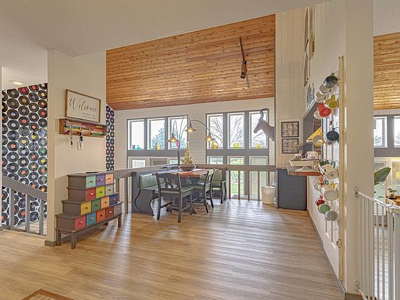 Two sided stone fireplaceFamily roomComplete wall of windowsTiled showerDouble sinksGreat little attic areaViews of the fairways