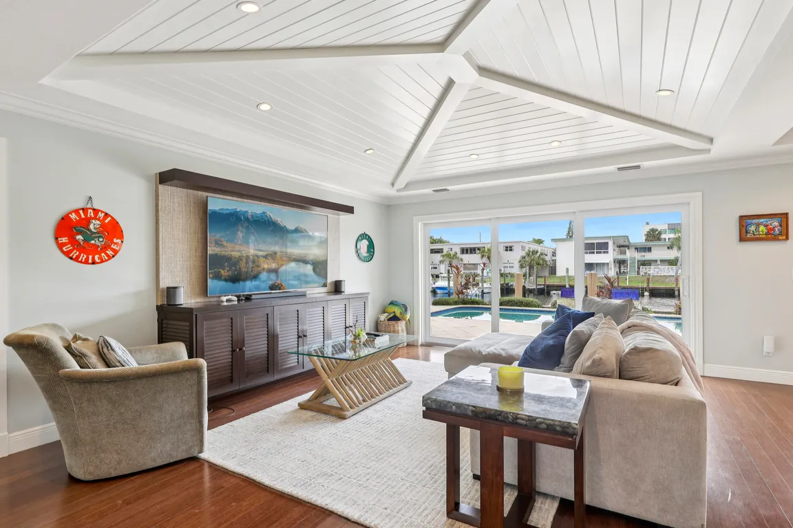Experience the ultimate in coastal living on a 120' wide southern exposure canal with 75' of premier no fixed bridge waterfront. The closest block to dining & the beach. This private retreat blends elegance and ease. Professionally designed interior showcases vaulted ceilings w/custom woodwork, custom bar, & an open chef's kitchen ...