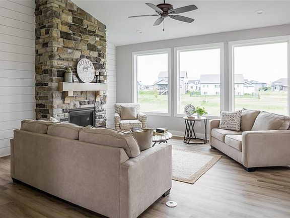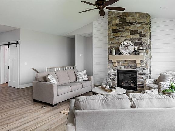 Tanzanite Homes Amber plan! The double door entry to this home provides a great feel as you walk through the front door. Vaulted great room with stone fireplace and shiplap really makes for a focal point. Large open kitchen featuring white cabinets, quartz ctops, stainless steel appliances, and large corner pantry. 2 bedrooms on the main floor, front bedroom could make a good office, and the master suite has a full tile shower, double vanities, and walk-in closet that passes through to laundry and drop zone with lockers. The finished walk-out lower level has 2 additional bedrooms, full bath, bar, and a very large family room. Other great features are covered deck, hardiplank siding, and 3 car attached garage. Over sized windows and great yard! No closing costs or origination fee through preferred lender.