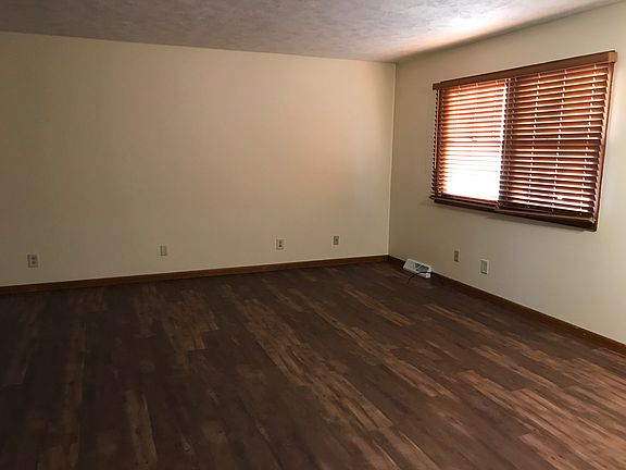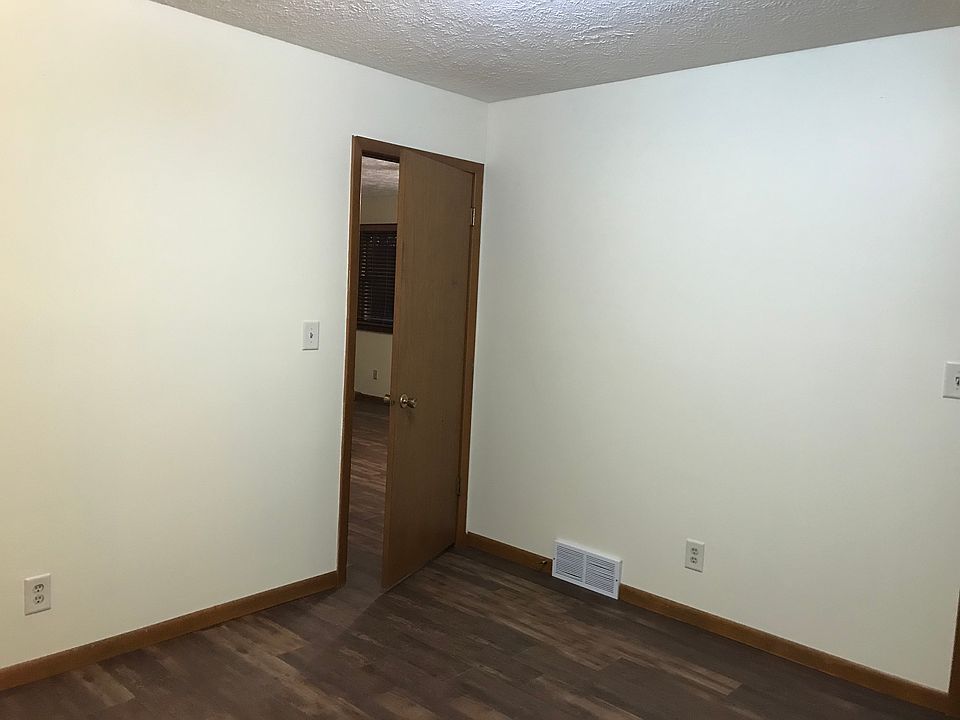 1 BR 1 BA apartment in a triplex. Ground level. One car detached garage. Full basement with laundry hook ups. Spacious.