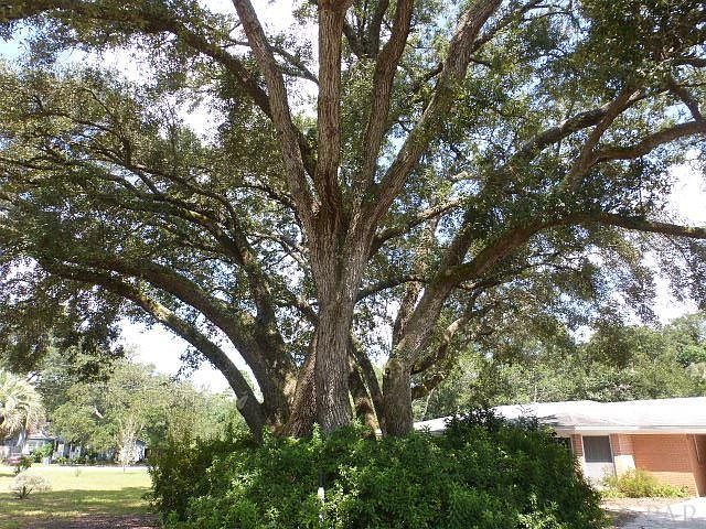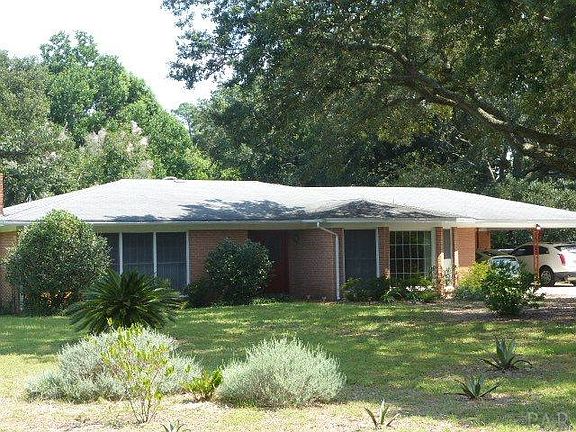 Mom, Dad or other family moving in with your? This unique brick home sits on 4 lots on a corner two blocks from Bayou Grande with accommodations for two families with separate entries. Original 2 bedroom 1 bath has pine wood kitchen cabinets and all appliances the shared family room has tongue & groove wood ceiling, wood paneling and tile floor. Previous owners added on to that house. The front house has tiled foyer and a fireplace in the formal living room the kitchen is spacious with lots of light wood cabinets and all appliances stay. The dining area adjourns the family sized kitchen and has large windows so it is light and bright, tile flooring here too. Master bedroom is 17 x 14 with 3 closets and a full bath. Second bedroom & hall bath could be part of either home. Floor plan was well designed to be flexible according to your needs. New HVAC system, 2 hot water heaters, one is instant hot water. Rebuild NWFL has improved this home and it is ready complete with storm shutters and tie downs. Never has this home been flooded and downed tree limbs were the only storm damages. The brick was completed all the way around so double brick on rear and everything is under one roof. Carport has a storage room for yard tools. Plenty of room for garden, pool and family gatherings. Close to NAS and you can go fishing or kayaking within walking distance. Come see this charming home.
