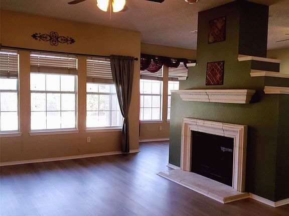 Single story home located in Timberview Estates West. Open and inviting four bedrooms with a secluded primary with Garden tub and two walk in closets. Lovely stone double fireplace divides the large living room and dining room that are flooded with natural light from the floor to ceiling windows and shows off the beautiful inground pool and patio area for outdoor living and entertaining.
