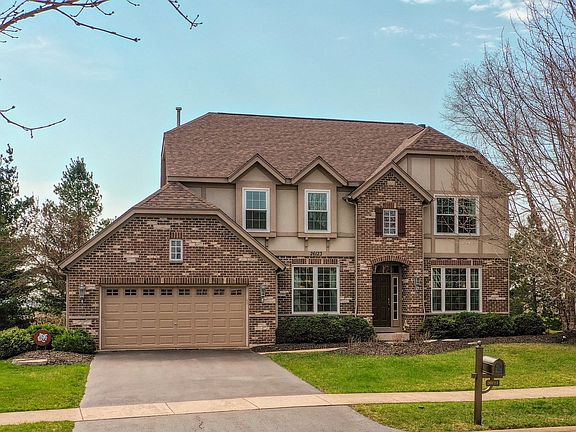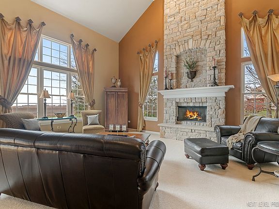 Welcome to Grande Park of Plainfield! Enter this beautifully maintained custom home with two story entry flanked by the living and dining room, leading into your dramatic family room featuring floor to ceiling stone fireplace and windows with custom draperies (throughout), providing plenty of light and open floor plan living. Well appointed kitchen with walk in pantry, granite counters and break bar seating at the center island. Plenty of counter space for entertaining at your butler beverage center with cooler and flex area for additional entertaining, storage and workspace. Large private main level office boasts custom mahogany built-ins! Enjoy morning coffee looking out to your private backyard with gorgeous Belgard Concrete Paver patio with custom fire pit and grill area! Moving upstairs from your open side staircase, you'll find four expansive bedrooms. Master bath with soaking tub and separate shower. This home is situated with a private back exterior and corner lot with adjacent private street pad for extra parking! Parking...enjoy your epoxy finished garage with expanded slab for extra storage! NEW Roof, NEW Siding, NEW Gutters, NEW A/C and Water Heater, NEW Washer and Dryer, NEW Windows throughout!! Amenities included in this pool/clubhouse community are basketball courts, tennis, ponds, paths, parks and more! Plainfield Schools with Plainfield North High School!