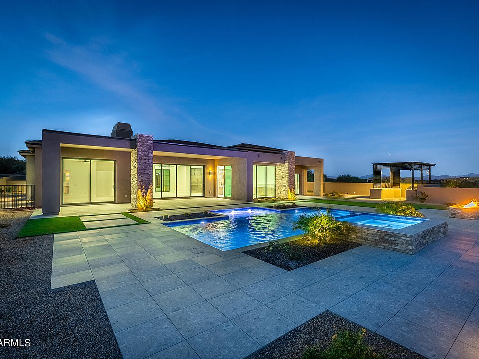 Enjoy this extraordinary breathtaking panoramic mountain views in this stunning brand-new property. This unique home sits on a premium lot of over 2.4 acres. It presents enticing opportunity for those seeking a prestigious and personalized living experience without the multi-year wait for a new build, it offers 2 master suits and high-end upgrades, and every bedroom has its own on suite bathroom. Full living attached Separate casita. The house is adorned with impressive ten-foot-tall sliding doors that can be opened to seamlessly blend the indoor and outdoor living spaces. Additionally, the property is equipped with a spacious 6-car garage. This Yearling Estates retreat has been upgraded, and Every inch of this custom home is filled with drama, top-of-the-line finishes and appliances