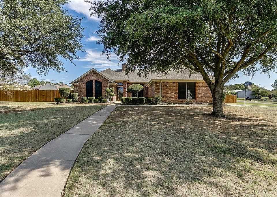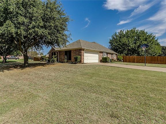 Immaculate 3 Bedroom, 2 Bath home on beautiful large corner lot with mature trees! Floor to ceiling brick fireplace & built-ins in family room! Kitchen features breakfast bar, travertine back splash & cabinets galore! Spacious bedrooms! Master bath has large vanity with double sinks and sitting area, garden tub, separate shower and two walk in closets! Large utility with built-ins! Covered back patio, huge back yard & 2 storage buildings with electric!