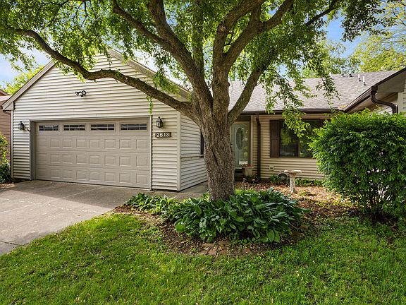 Located in Parkland Ridge on a quiet side street, this sweet 1/2 duplex/zero lot is awaiting its new owner to join this friendly neighborhood. There are no monthly or annual fees associated with this home. 3 Bedrooms, 2 Full baths and a 4 Season Room are included in the 1556 SF of living area plus the attached 2 car garage has pull down stairs for extra storage space. A galley style kitchen provides a pleasant area for meal prep and the breakfast bar is a convenient spot for quick and casual dining. The Cathedral ceiling lends a sense of spaciousness to the combined living room/dining room, complimented by a gas log fireplace for a cozy ambiance. When seeking a moment for downtime, the built-in window seat presents the perfect niche to recharge. The split floor plan is a desirable privacy feature, the main living area separates the primary suite from the remaining 2 bedrooms and bath. Nature's beauty can be viewed in year-round comfort from the heated/cooled 4 Season Room and provides access to the exterior patio and backyard. Lot ownership allows the ability to enhance landscaping with your personal touch (fencing OK) and usual seasonal lawn care. The roof was a tear off 2014, Leaf Guard gutter guards 2016/2024, the furnace/ac have received bi annual maintenance and function well..the owner will provide a one year home warranty, if desired. This property has been pre inspected for your convenience, the inspection is available upon request and seller prefers no inspection contingency. Parkland Ridge has sidewalks throughout plus multiple green spaces and water areas to enjoy. Come visit..you'll be glad you did!