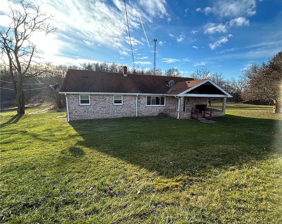 COUNTRY LIVING ON 5+ ACRES of rolling hills, 1200 sq ft GARAGE with 3 oversized doors, pit, & cement floors, and don't forget the 3 bedroom BRICK home. Home features newer windows throughout, roof and heat pump less than 10 years old, first floor laundry, stainless steel appliances, walk-up attic, and walk-out dry basement. Schedule appointment today to see this one of a kind property.