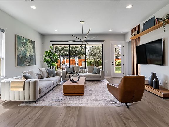 Live Smart. Schools, Shops, and Style ~ Available for mid-November move-in! This energy-efficient 5-bedroom home is filled with thoughtful upgrades that go beyond design, including solar panels, EV-ready outlet, and all major appliances refrigerator, washer, and dryer included. Enjoy a dedicated home office, upstairs game room, and a spacious, open layout ideal for everyday living and entertaining. Nestled on a quiet, tree-lined cul-de-sac in Leander's award-winning Deerbrooke neighborhood, this home is walking distance to top-rated LISD schools and state-of-the-art community amenities. Step inside to soaring ceilings, hardwood floors, and sleek finishes. A bold accent wall and geometric detailing set a designer tone, while French doors open to a private office or flex space. The chef's kitchen features floor-to-ceiling cabinetry, black-and-gold hardware, built-in appliances, and a Texas-sized island with seating. The living room showcases a custom wood accent wall and expansive sliding glass doors that open to an entertainer's dream backyard complete with covered patio, additional seating area, outdoor kitchen under a pergola, and lush native landscaping with a gorgeous oak tree. Retreat to the downstairs primary suite for privacy, with four secondary bedrooms and a game room upstairs for flexibility and fun. Deerbrooke offers miles of scenic trails, a resort-style pool, fitness center, dog park, splash pad, and more. Easy access to 183, Hwy 29, Leander Metro Rail, and just minutes from HEB Plus, Costco, and Whole Foods.