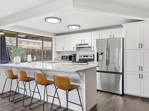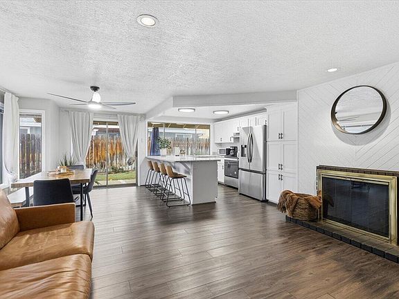 Cozy wood-burning fireplaceSleek quartz countertopsModern cabinetryBeautifully updated kitchenAmple parkingNewer stainless-steel appliancesWelcoming covered front entry