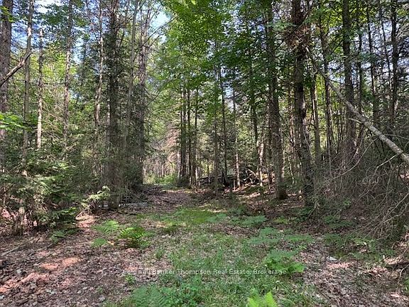 This 2.4 acre piece of land is nicely treed with a creek. There is an adorable bunkie with a woodstove and a diesel heater. Useable in the wintertime. A shed and a privy are also on the land. This property is located on a paved road, 5 minutes from Sprucedale and the Seguin Trail. Lakes are close bye. Popular recreational area. Build your dream home or cottage.