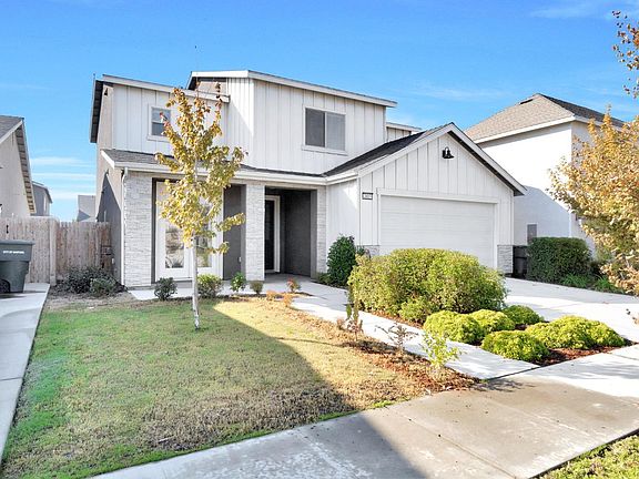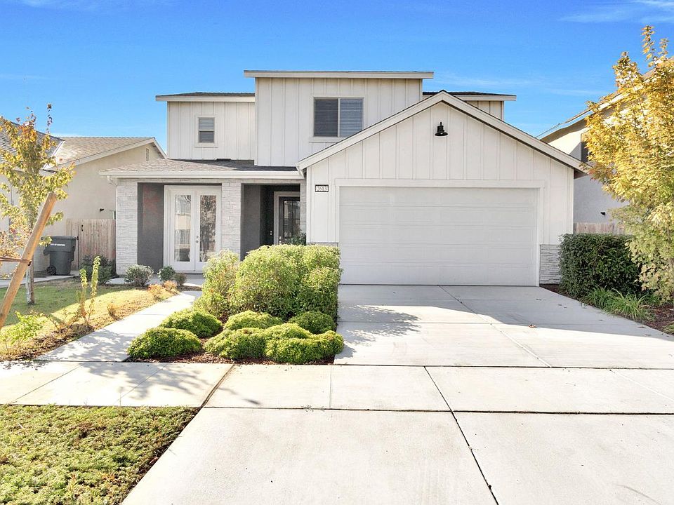 Welcome to 2613 W Mallard Lane, where modern comfort meets thoughtful design in this stunning Lennar Countess model home. This impressive 4-bedroom, 3-bathroom residence spans 2,280 square feet and features an additional flex space that opens to the front porch through elegant French doors, perfect for a home office or entertainment area. The heart of this home showcases an open-concept family room and kitchen, anchored by a large kitchen island with granite countertops. The modern backsplash complements the well-appointed pantry, creating a chef's dream workspace. A convenient half bath completes the first floor living areas. Double doors lead to the luxurious primary bedroom suite, featuring dual sinks, a spacious closet, relaxing soaking tub, and separate shower. Three additional bedrooms provide versatile living options, while the second-floor laundry room adds everyday convenience. The outdoor space offers endless possibilities for relaxation and entertaining, enhanced by the home's owned solar system that provides energy efficiency and cost savings. Located in the desirable Ironside community, residents enjoy proximity to Sierra Pacific High School, just over a mile away. This VA Assumption Eligible property represents exceptional value in today's market. The combination of modern amenities, practical layout, and energy-efficient features creates an ideal living environment for those seeking comfort and convenience. The thoughtful floor plan maximizes both privacy and gathering spaces, while the outdoor areas provide perfect settings for California living. Don't miss this opportunity to own a quality-built home in an established Hanford neighborhood. This home is Virtually Staged