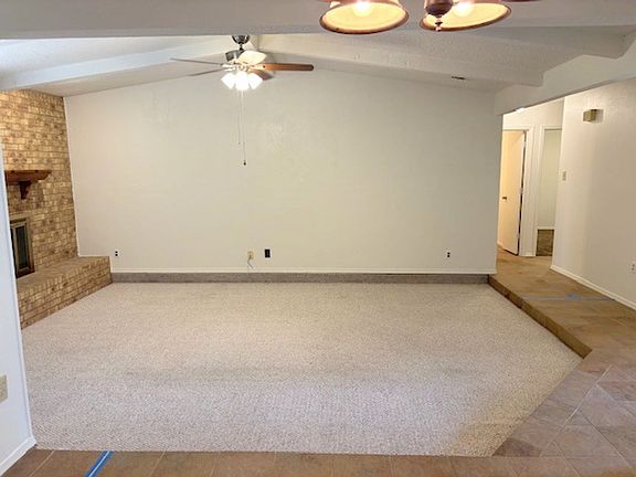 This charming three-bedroom, two-bath home is nestled on a peaceful cul de sac lot. Step inside to a spacious living area with vaulted ceilings and a cozy woodburning fireplace, perfect for relaxing evenings. Move forward into the inviting dining area with tile flooring, seamlessly flowing into a modern kitchen. Here, a breakfast bar, granite countertops, stylish tile backsplash, and a sunlit skylight create a warm and welcoming space, complemented by abundant storage. The primary bedroom offers a tranquil retreat with a walk-in closet, an oversized vanity, and a walk-in shower. Two additional bedrooms and a second bathroom provide comfort and flexibility for family or guests. The utility room features built-in cabinets and shelves for extra organization. Step outside to a covered patio overlooking a private, fenced backyard with a handy storage building, while a two-car front entry garage adds convenience. Enjoy easy access to major freeways, shopping, and dining just moments away.