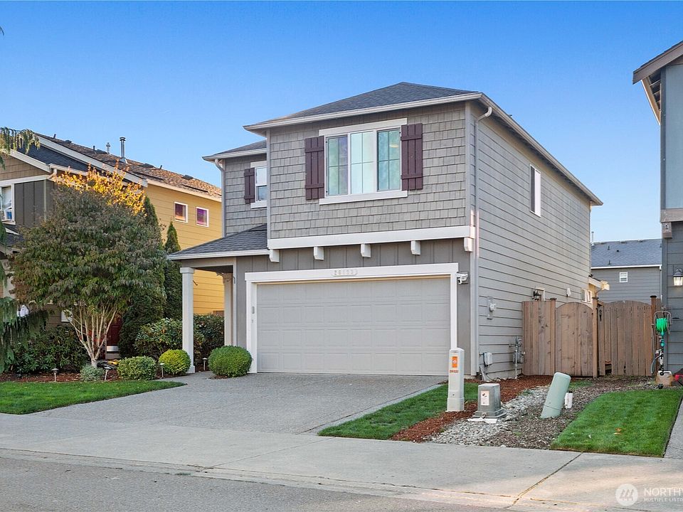 Welcome to the Woodridge! This thoughtfully designed home features 4 bedrooms, 2.25 baths, & is conveniently located within walking distance to Maple Valley Town Center, Tahoma Schools, & all the wonderful amenities Maple Valley has to offer. The main floor boasts an open-concept layout, including a versatile eat-in kitchen nook, dining area, & modern stainless steel appliances that are included. Neutral flooring & paint throughout create a perfect canvas for your personal style. Step outside to a spacious, fully fenced backyard with a level lawn, slab patio ideal for entertaining, & raised garden beds. The garage provides parking for two cars, ample storage, & convenient man door. Enjoy the A/C! Pre Inspected.