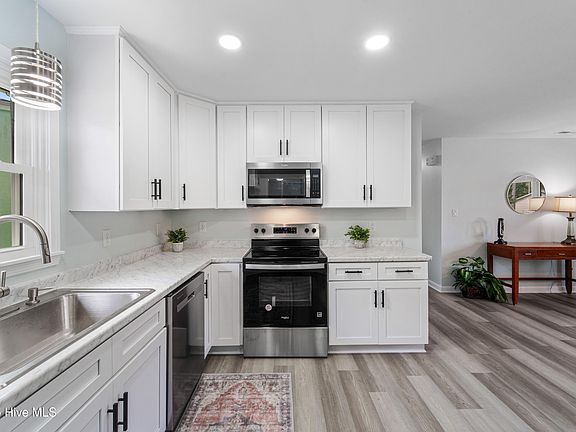 Newly Renovated! This 4 bedroom, 1.5 bath, bright & airy floor plan has it all PLUS 2 bonus rooms! Great for studio, home business, or playroom for the kids. Also includes ALL NEW; modern kitchen w stainless appliances, baths, LVP Flooring, designer paint, and the list goes on! Convenient to base, restaurants and shopping! Professionally updated by HomeVestors. Vacant so easy to see most anytime. No HOA. Your dreams begin here!