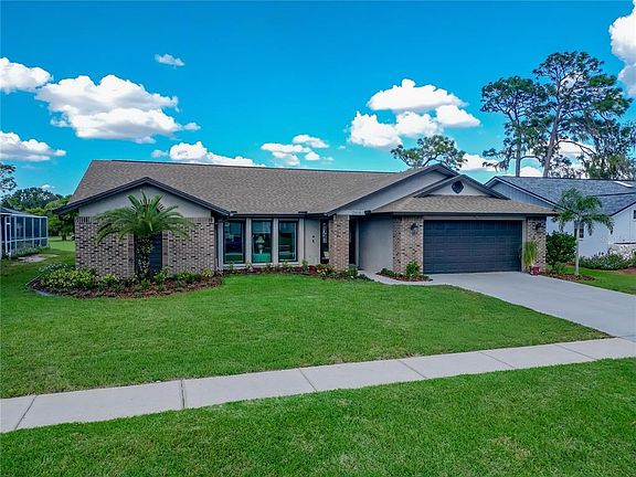 Discover this beautifully updated 4 bed/3 bath pool home with a three-way split plan, perched on the par-3 12th hole of Buckhorn Golf & Country Club. Step inside to soaring vaulted ceilings above a sunlit living room and adjacent dining area. The kitchen dazzles with new 42" white cabinets, pull-out drawers, black stainless appliances, upgraded granite, a pass-through to the lanai, and a breakfast bar for five beside a cozy nook and pantry. At the heart of the home, the vaulted family room features an electric fireplace wrapped in floor-to-ceiling designer marble brick and a built-in media cabinet. A sliding glass door opens to your private oasis: a fully screened lanai with breathtaking “picture window” golf views, resurfaced Pebble Tec pool, and freshly painted deck. The spacious primary suite flows into a spa-style bath with clawfoot tub, glass shower, dual sinks, granite vanity, and walk-in closet. Three additional bedrooms offer flexible sleeping or home office options, all with ceiling fans and closets. Two updated baths include glass shower doors, one with pool access. Roof replaced 2022; front crank double-pane windows 2022. Remaining windows and main slider upgraded 2023–2024. Interior/exterior painted 2023; pool pump replaced 2023; kitchen cabinets upgraded 2024. Professionally landscaped. Quiet Brandon location in A-rated school zone. Low HOA. Close to shops, dining, and major roads.. A very rare find. Call Barb for an appointment.