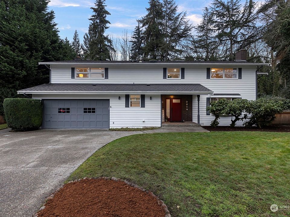 Over $450k + improvements since 2019 include flooring, walls, most interior surfaces, and Trek deck. Inside, enjoy a spacious living room with an upgraded fireplace, a new fireplace in family room & French door access to the deck, a formal dining room overlooks the serene backyard. The home features five large bedrooms, including a private suite, plus an open loft space and ample built-in shelving. The gourmet kitchen includes Corian countertops, a Liebherr refrigerator, Gaggenau double oven, gas range, & a French door leading to the deck that spans the full width of the house. The tranquil backyard offers a vibrant garden, a waterfall, a gravel section perfect for sports, & a greenbelt for extra privacy. Minutes to 520 & down town Bellevue