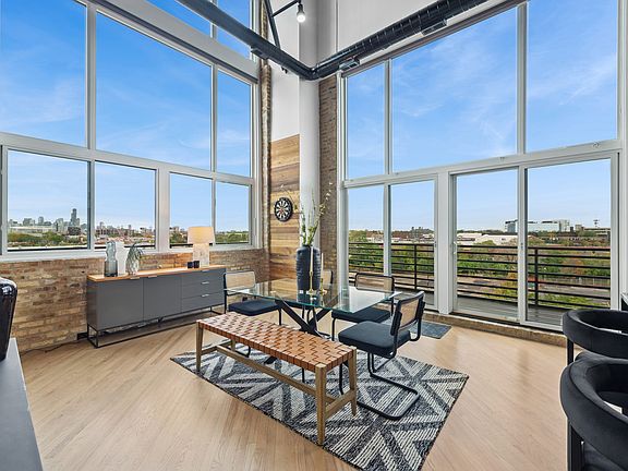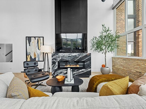 A masterful blend of industrial edge and modern refinement in the heart of Lincoln Park. This corner 1600 sq ft + brick and timber loft with 20+ foot ceilings, blackened steel beams, and exposed brick walls celebrates authentic loft architecture while embracing contemporary luxury. Floor-to-ceiling windows pour natural light across the space, framing panoramic views of the Chicago skyline and river. The wrap-around balcony extends the living area outdoors-perfect for coffee at sunrise or golden-hour cocktails against the city backdrop. Every element of this home reflects a meticulous attention to detail. The chef's kitchen pairs blacked out cabinetry, newer stainless appliances and a waterfall island rich in movement & texture. A sleek fireplace anchors the living room, balancing warmth and sophistication. The primary suite, located on the main level, offers a serene retreat with a spacious walk-in closet and a spa-inspired bath featuring heated floors and high-end finishes. Upstairs, the lofted second bedroom and den overlook the dramatic living space below-an ideal perch for a creative studio or home office. Additionally, a ladder leads to a small 3rd level which serves as a meditation space. Classic hardwood floors, automatic window treatments, a smart thermostat, recently tuck-pointed brickwork, Pella windows in livingroom, Pella slider in diningroom and in-unit laundry. The home also includes a deeded parking space in a secure, gated lot, a shared bike room, and on-site building maintenance, supported by strong association reserves & a hands on building manager with maintenance 8a-5p during the week. Perfectly positioned near Lincoln Park's best dining, boutiques, public transit, shopping and the Midtown Athletic Club. This is where historic architecture and modern design live in timeless harmony. Within the Prescott Elementary and Lincoln Park High School districts.