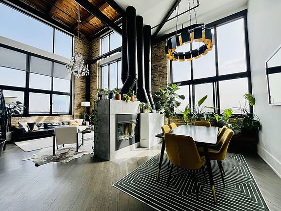 Immaculate, lofty, sun-filled and inside a beautiful boutique elevator-building in the heart of West Lakeview and Lincoln Park neighborhoods on Clybourn Ave, this unique and picturesque penthouse offers the rare combination of privacy and city views with 2 bedrooms and 2.5 baths and exposed brick timber loft with 25-feet of floor-to-ceiling height. Keeping its historical patina despite being rebuilt from the studs, this rare and stunning 4th (top) floor corner 3-level penthouse is available for rent at $4595/mo and available on May 1st. The two full suite bedrooms connect to a cinematic open-concept living & dining area framed by walls of giant floor-to-ceiling tinted windows. One of the suites even hides a private crow's nest den space (perfect for a yoga, art studio or office) just beyond the labyrinth of custom walk-in closets. Every detail of this smart home from the automated Lutron blinds, automated fans and light, Mr. Steam shower, infrared dry sauna and black out curtains combine to make this condo a nest in the sky. The painstakingly intricate and beautiful marble and metal backsplash might otherwise distract from the fact that this all stainless steel Thermador kitchen with double oven with steam, wine fridge, and quartz countertops was designed to be a real workhorse kitchen. Additionally, the exterior includes city skyline unobstructed views with a full wrap-around balcony. Also included are 260 square-feet of storage space to ensure plenty of room for your seasonal and extra belongings that need to be kept out of sight. Located centrally and adjacent to a commercial area full of name-brand stores, grocers, retailers and much more, the unit is located within walking distance of Prescott Elementary School, Wrightwood Park and the Chicago River with close access to I-90/94. The unit features plenty of natural light with high ceilings, beautiful wooden floors, a very large living & dining room area, central A/C and heat, in-unit washer and dryer, private storage space, a large steam shower (Mr. Steam) in the primary bathroom, commercial grade oven range and appliances, a sauna and a single private carport parking (not included but available for rent). Great restaurants, bars and cafes within blocks of the building include: Oliang, Bonci Pizza, Hexe Coffee & Cafe, Mi Nueva Tierra, Suda's Lebanese, Pequod's Pizza and much, much more. This apartment rents quickly, so please contact us today to coordinate a showing! Credit check, security deposit and/or move-in fees required. Private parking available (not included). Pet fees apply.